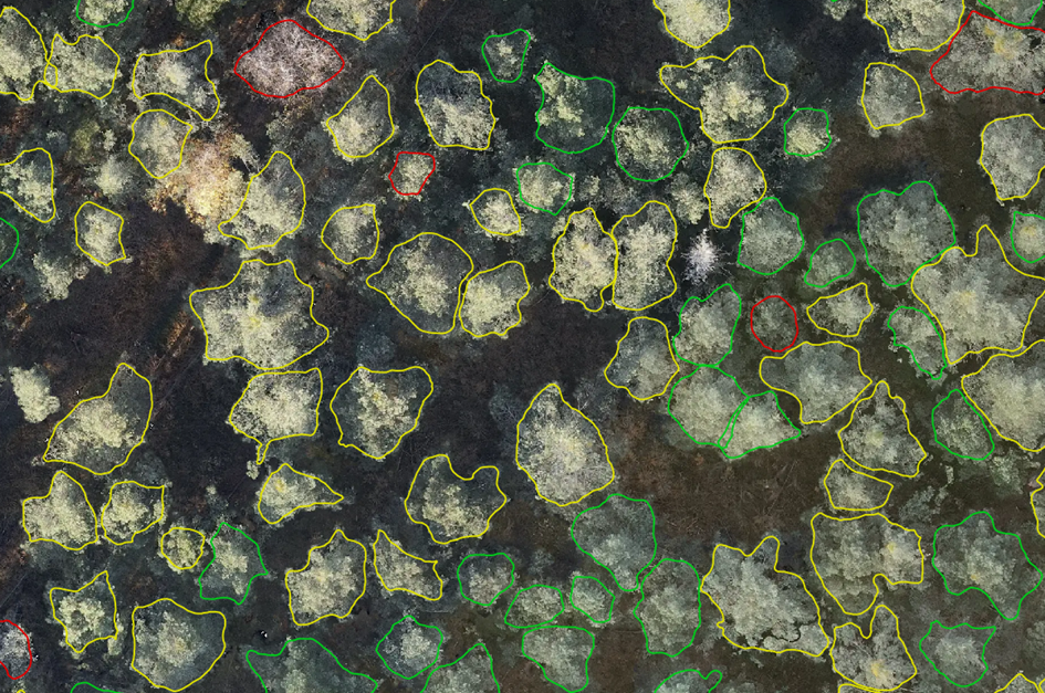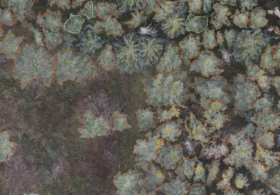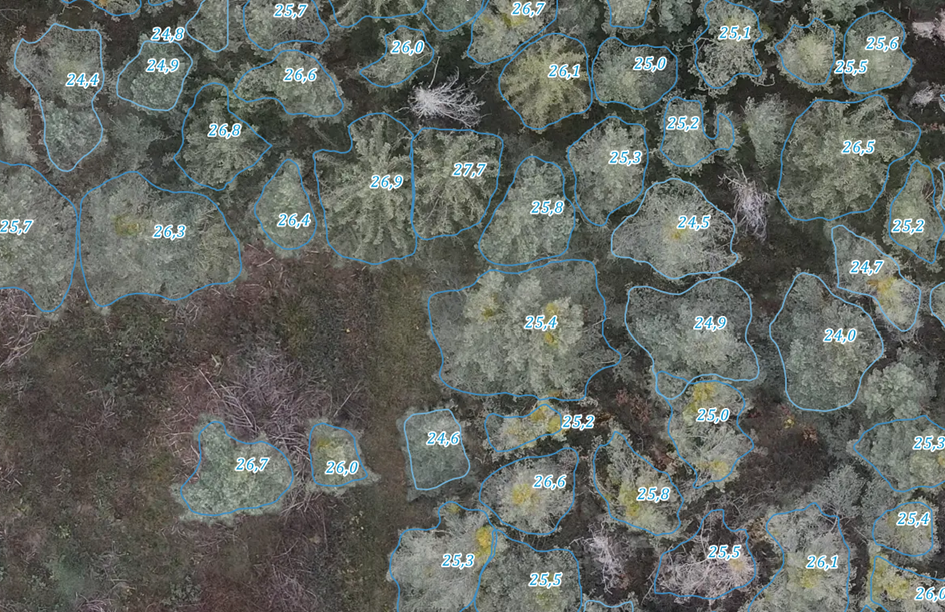 Aus hochauflösenden Drohnenaufnahmen werden automatisch Einzelbäume erkannt,