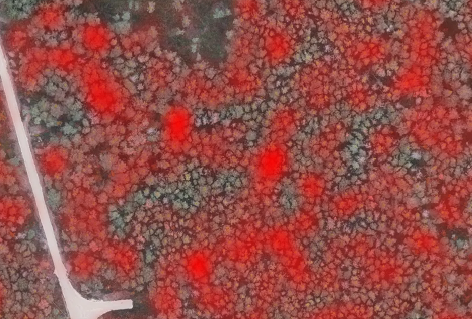 Zusätzlich erkennt BaKIM Mistelbefall in Kiefernbeständen mit einer Genauigkeit von 90%. Befallsherde werden flächendeckend visualisiert, sodass gezielte Gegenmaßnahmen möglich sind, bevor sich der Schädling weiter ausbreitet.